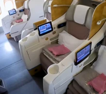 Terrible, Cramped biz class seats. 2-3-2 config should be retired.. No elbow room. There should not be a middle seat in biz class especially for long haul flights. Plus a tacky fake wood interior. Since they packed as many people as they could in biz class, the service is below par.