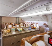 Erleben Sie Regionaljet-Reisen vom Feinsten in der Business Class der Boeing 777-200 LR von Emirates. Sie ist für 38 Passagiere ausgelegt und bietet eine ruhige Umgebung mit modernsten Annehmlichkeiten. Die Sitze sind so gestaltet, dass Sie sich entspannen können, das Essen ist eine kulinarische Reise und die Unterhaltungsmöglichkeiten sind umfangreich und modern. Die Crew sorgt mit ihrem Engagement für eine ebenso komfortable wie unvergessliche Reise.