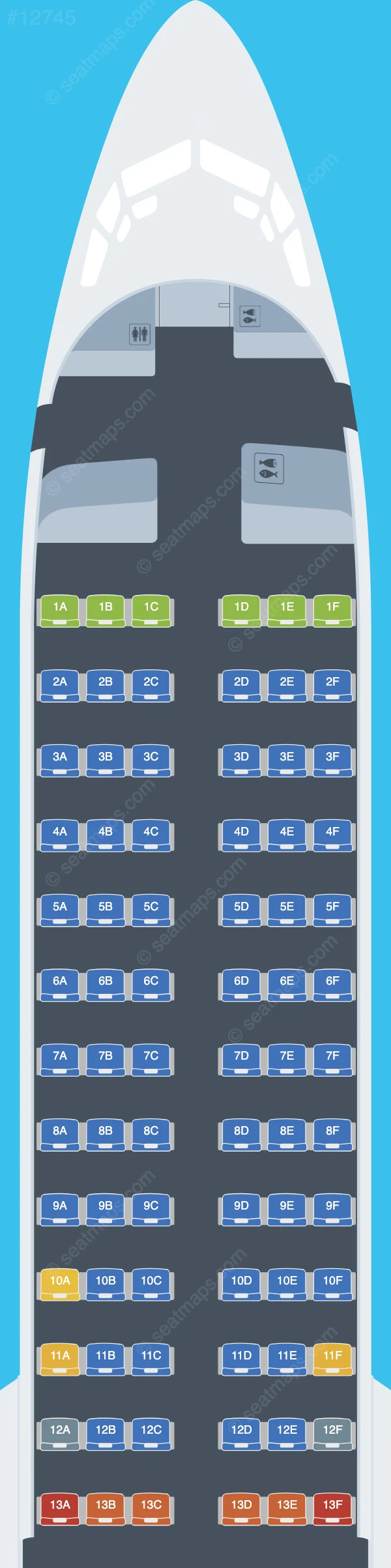 La cabina económica tiene capacidad para 174 pasajeros. La mayoría de los asientos tienen una separación estándar de 30" (76 cm), mientras que los asientos Economy Prime de la parte delantera y de las filas de salida del ala cuentan con espacio adicional para las piernas. Dos aseos y la cocina principal se encuentran en la parte trasera de la cabina.