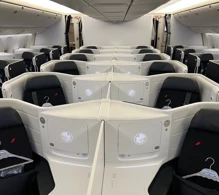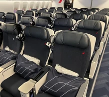 拡張されたプレミアム・キャビンは8列シートで44人乗り。シート幅は19インチ(48cm)で、124°までリクライニング可能。シートピッチは38インチ(96cm)で、22AB席と22KL席は出口があるため足元は無制限。窓がなく、ドアの断熱性が低いため、少し寒く感じるかもしれない。ブルートゥース接続も可能な最新のエンターテインメントシステムを搭載。各座席にはUSBとA/C電源コンセントもある。WiFiも利用できる。