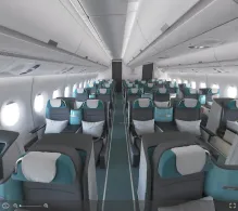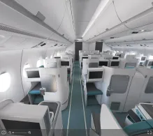 The Airbus A350-900 is a long-range, wide-body, twin-engine passenger aircraft. It had its maiden flight on June 14, 2013 and entered service on January 15, 2015. The aircraft is powered by two Rolls Royce Trent XWB high bypass turbofan engines, giving it a range of 8300nm (15372 km) with a typical load of 315 passengers. The A350 family features an extra wide cabin enabling wider seats and aisles than its direct competitor. The wings and fuselage are primarily constructed of composite materials, greatly reducing the aircraft's weight. Together with the new generation engines and state of the art systems, the Airbus A350-900 boasts a much improved fuel efficiency while reducing emissions.