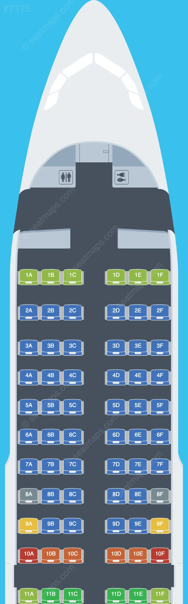 - The West Air Airbus A319-100 seat map shows 144 seats configured as: 18 Premium Economy, 126 Economy.