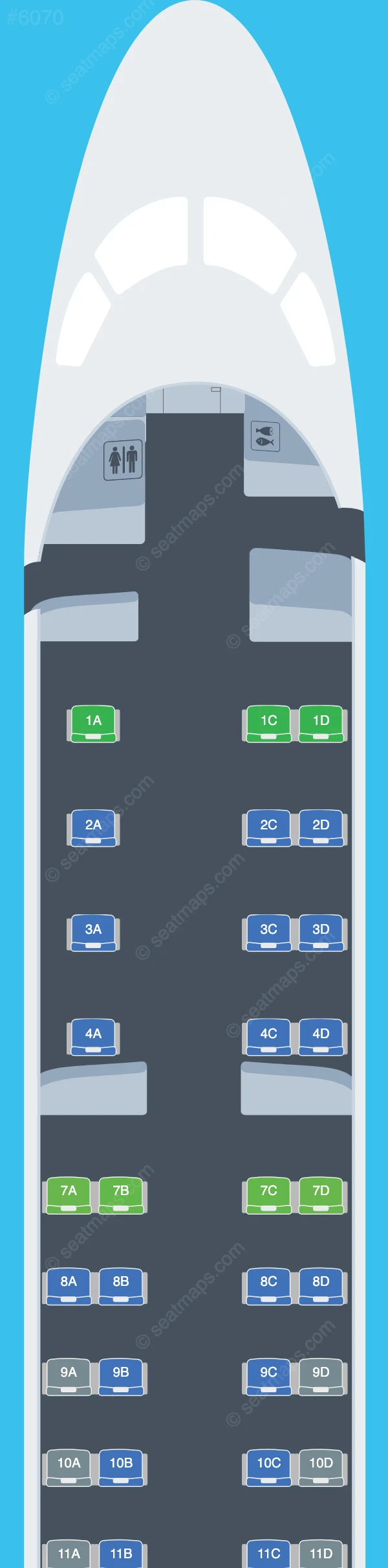 - Republic Airways Airbus A320-200 koltuk haritası, aşağıdaki yolcu konfigürasyonunda 76 koltuğu gösteriyor: 12 Birinci sınıf, 20 Premium Ekonomi, 44 Ekonomi.